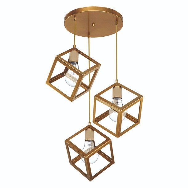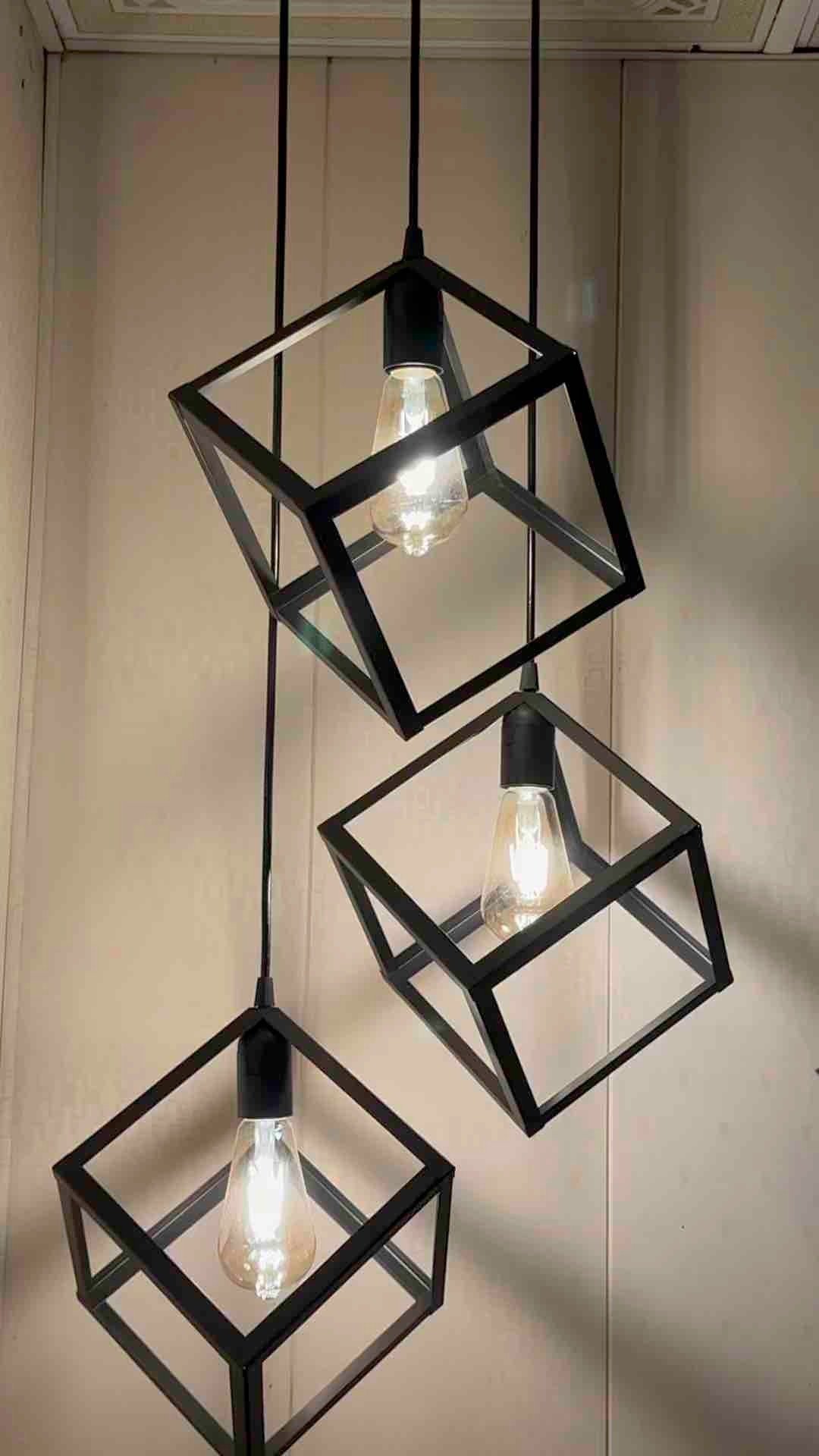 3-in-1 Base Square Shape Metal Hanging Pendant Lights – Ceiling Hanging Lights for Office, TV Lounge, Bedroom, Kitchen, Hotels & Home