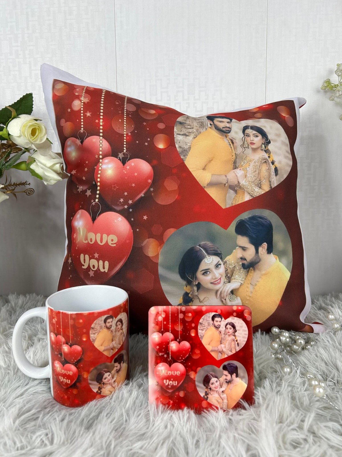 3-in-1 Customized Gift Set – Mug, Plate & Cushion