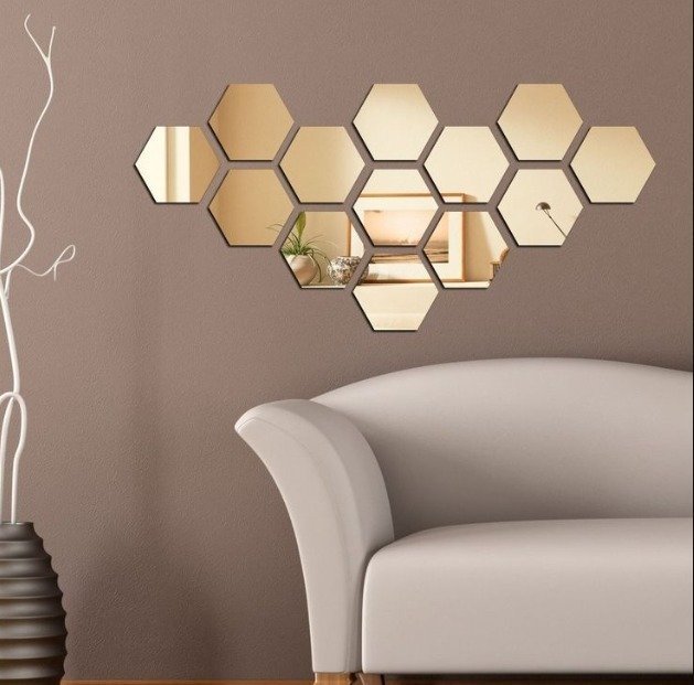 ⦁ Single Hexagon Mirror – One mirror with a sleek hexagon frame.